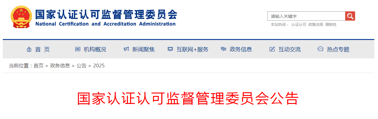 - 国家认监委发布最新认证认可业务信息统一上报平台通知